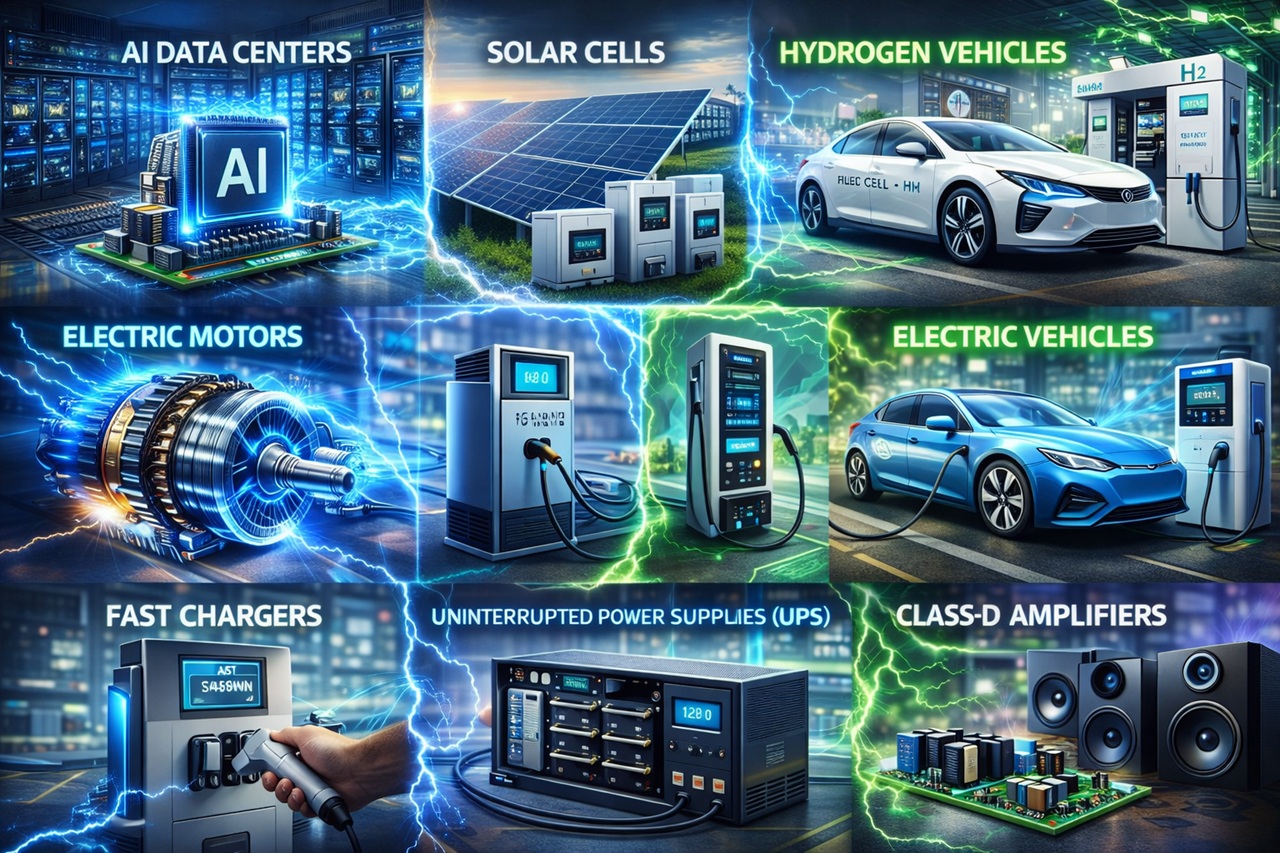 The patented technologies offered by our team have numerous applications in high-frequency switching systems in power electronics.